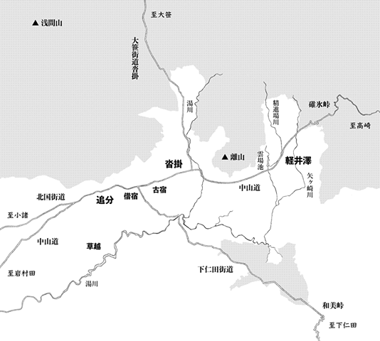 玄兵衛が、沓掛宿から軽井澤宿に向かうシーンでは、