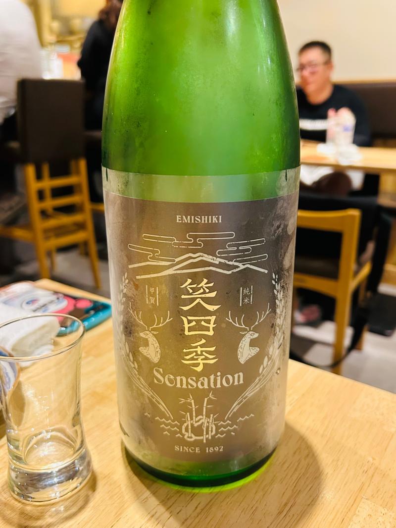最初の三点盛りに寄り添ったのは、滋賀・笑四季(えみしき)酒造の「Sensation」