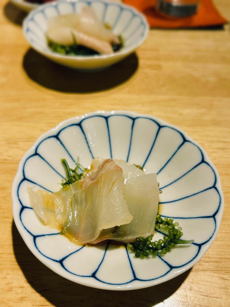 下に敷かれた海ぶどうのプチプチとした食感がアクセントになり、ただ上品なだけで終わらない、五感に残る体験を演出してくれる。