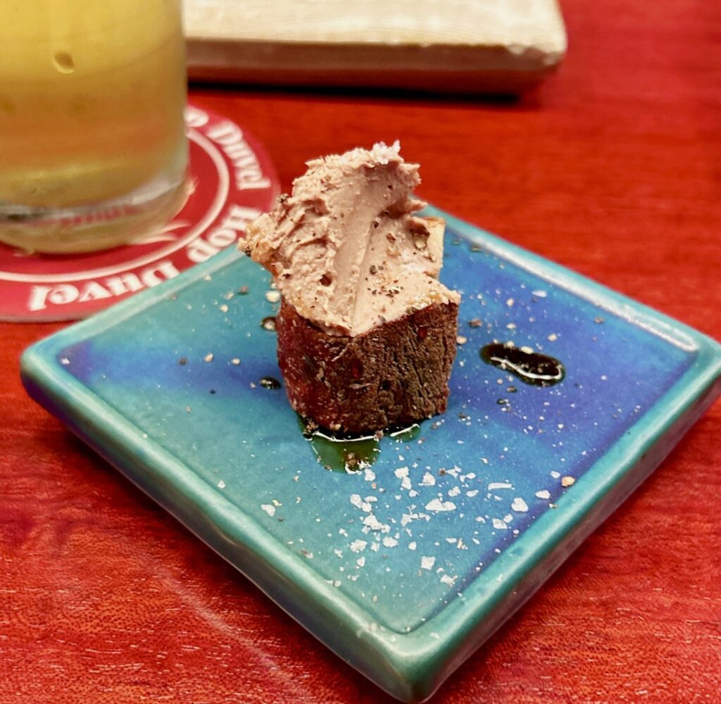濃厚なレバーペーストは塩の粒感がアクセントになり、