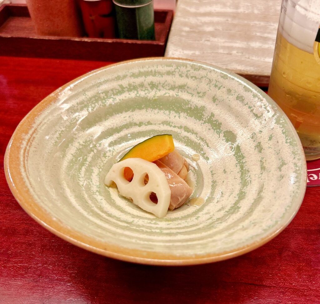 🥒 前菜(かぼちゃ・レンコン・鶏肉の酢の物)