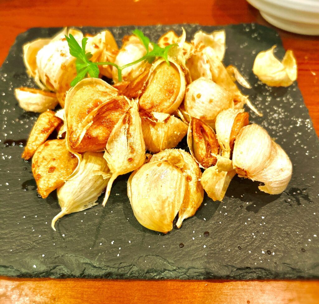 丸ごと揚げたにんにくは、外はカリッと、中はホクホク。