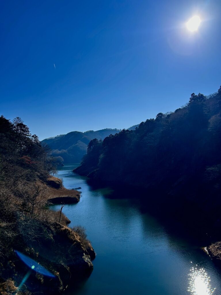 まずは塩原方面へ。「もみじ大吊橋」では、冬の澄んだ空気の中、360度広がるパノラマに圧倒されました。全長320メートルの空中散歩は、日常の雑多な思考を吹き飛ばしてくれるような開放感があります。