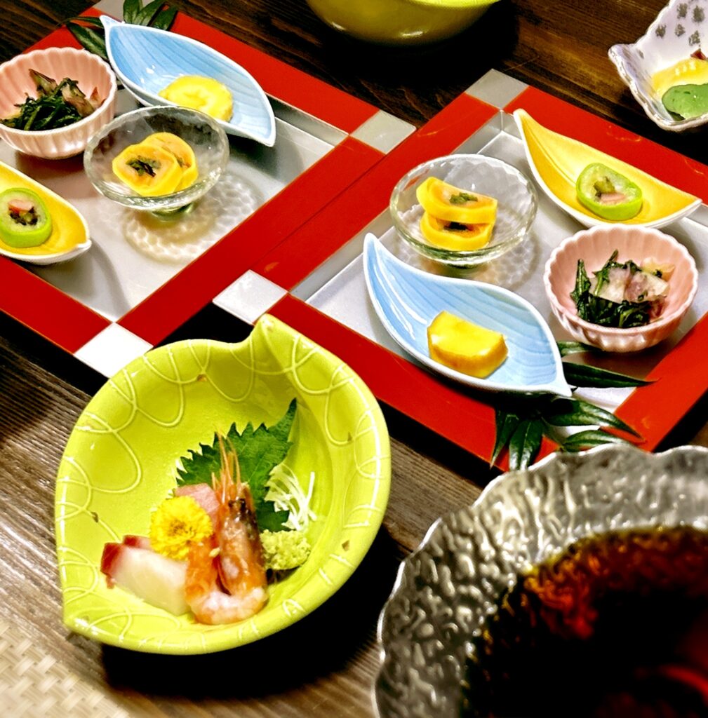 お楽しみの夕食。地元の食材を活かし、一品一品丁寧に仕上げられています。