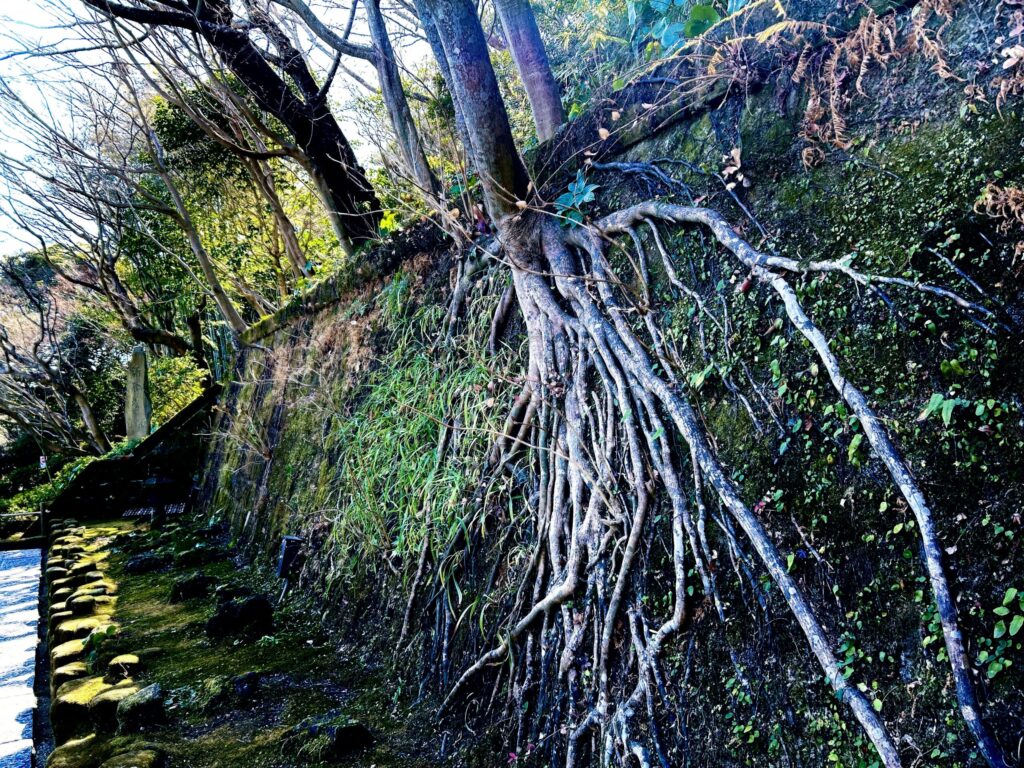 石垣を這う木の根に、思わず足が止まりました。