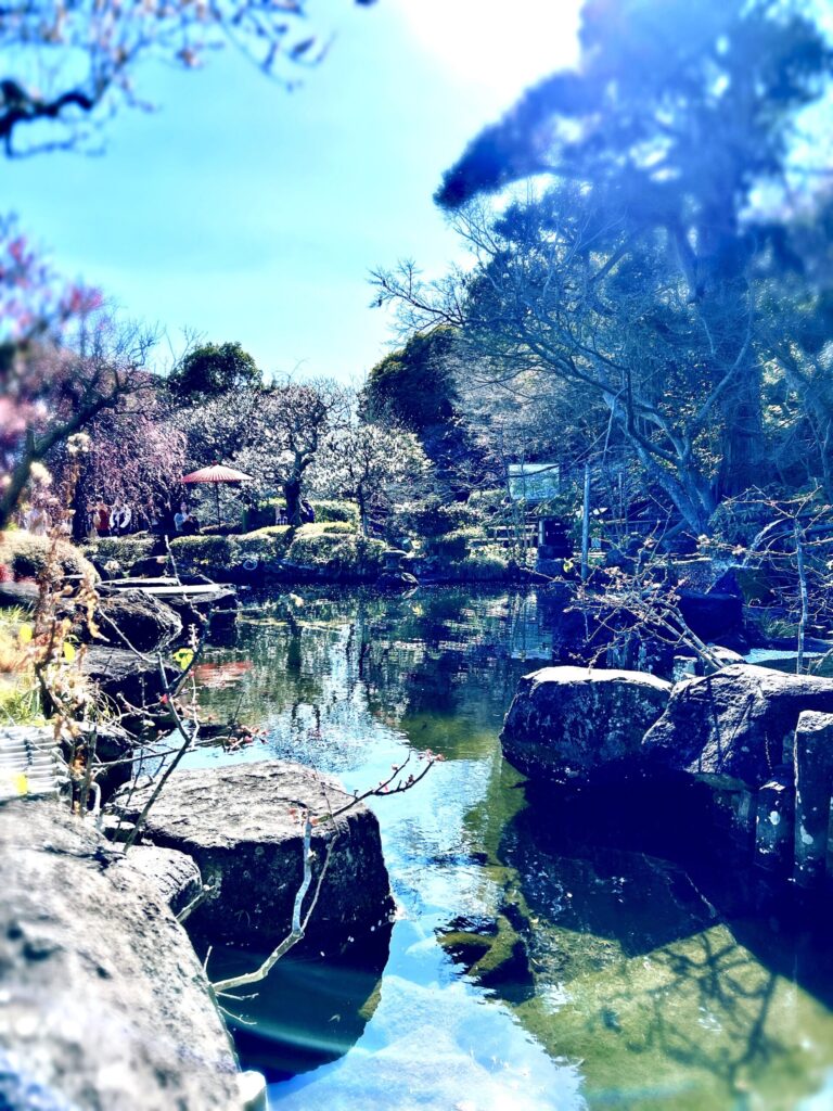 梅はまだ三分咲きといったところですが、庭園を歩けば確かな春の足音が聞こえます。