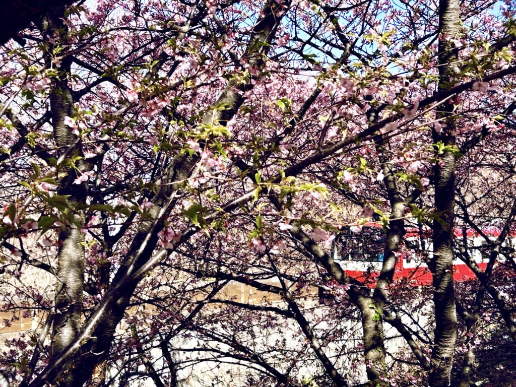三崎口に戻り、今度は昼の河津桜を写真に収めることにした。