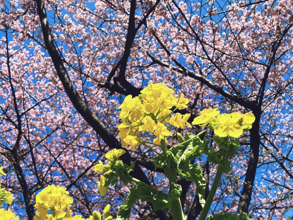 河津桜と菜の花のコラボレーション。
