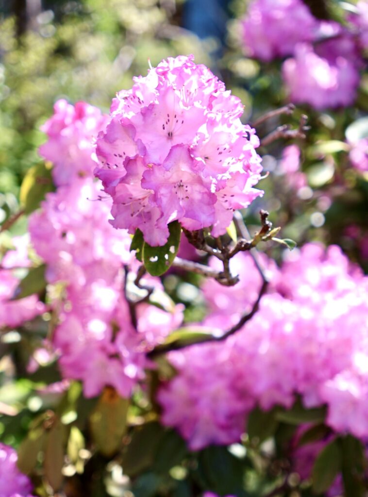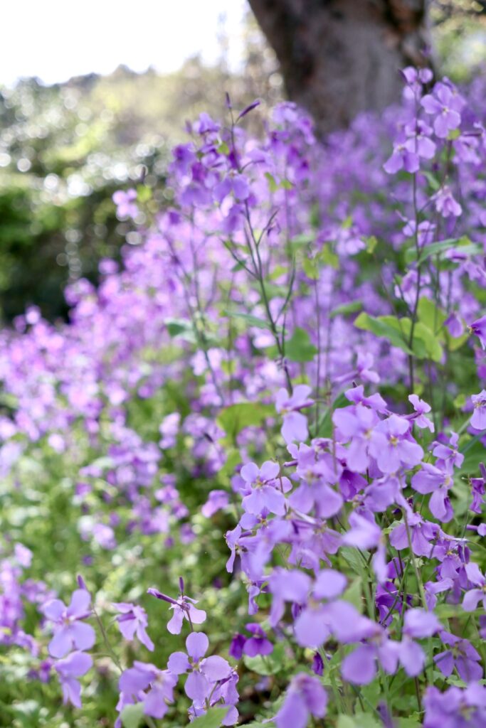 遊歩道に咲き誇る花々は、目にも鮮やかな春の色を添えている 。