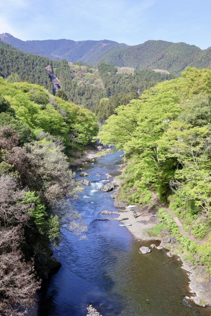 澤乃井園の方向へ歩いていくと、川にはカヌーの姿が見えた 。