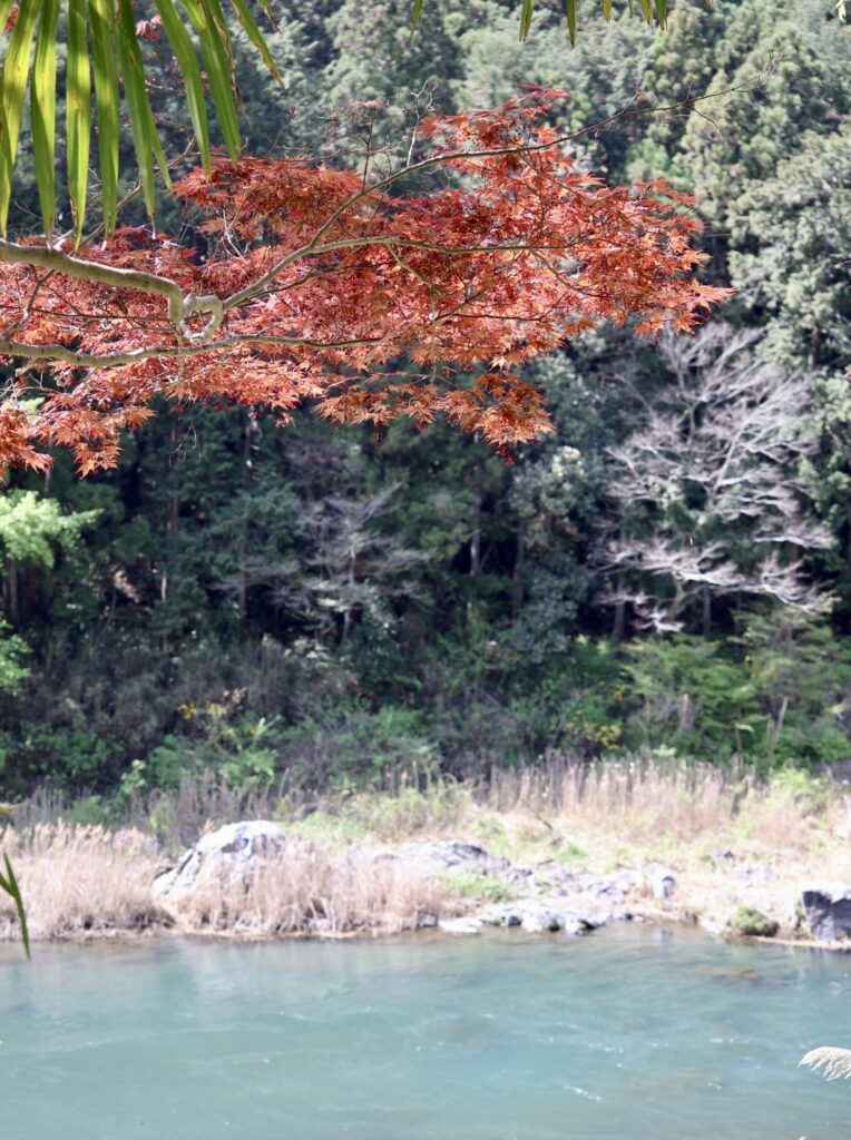 やがて到着した澤乃井園から眺める楓橋は、また違った表情を見せてくれた 。