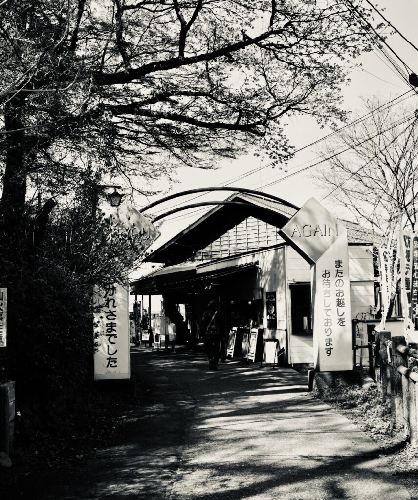 出口の門に記された「またのお越しをお待ちしております」の文字 。そう言われては、また来ないわけにはいかないだろう。