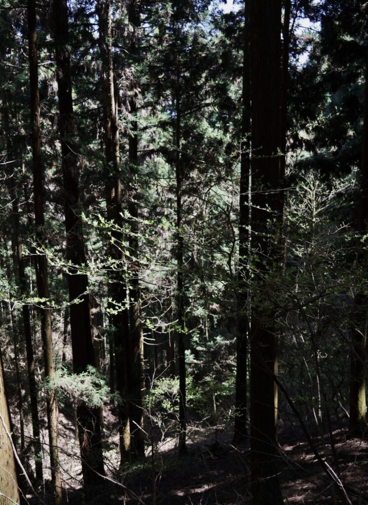 ロックガーデンに向かう山道も、木々の間から差し込む光が幻想的なコントラストを描き出す。この道がすでにいい。