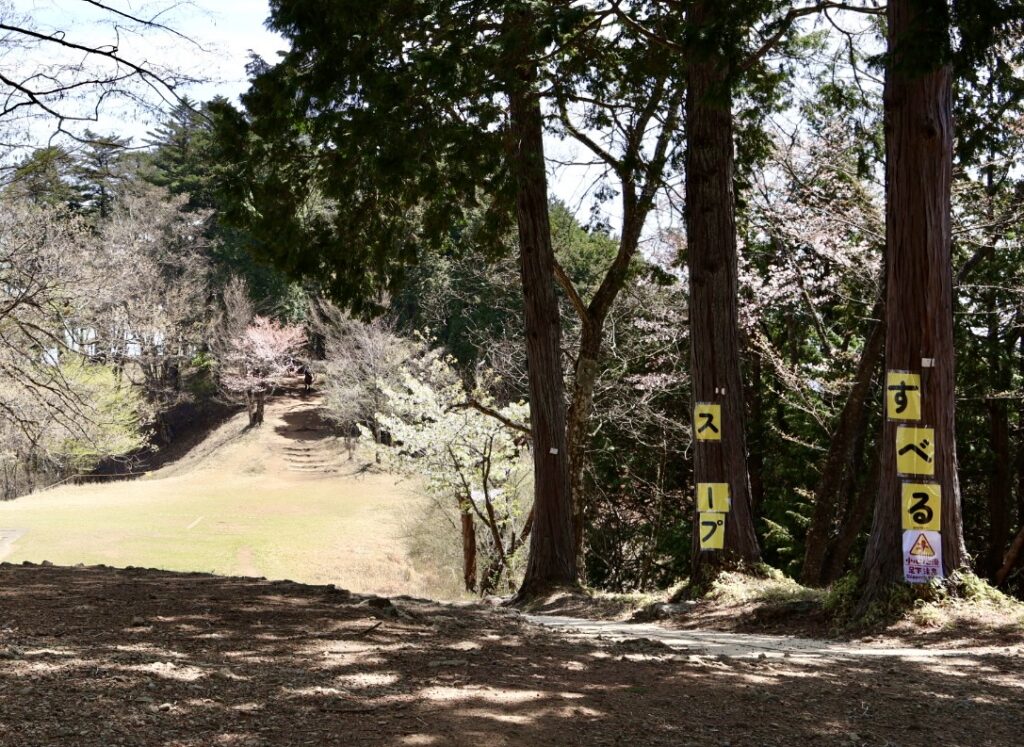 今も木々に貼られた「すべる ス○ープ」の注意書きが、あの時の記憶を鮮明に呼び起こす。